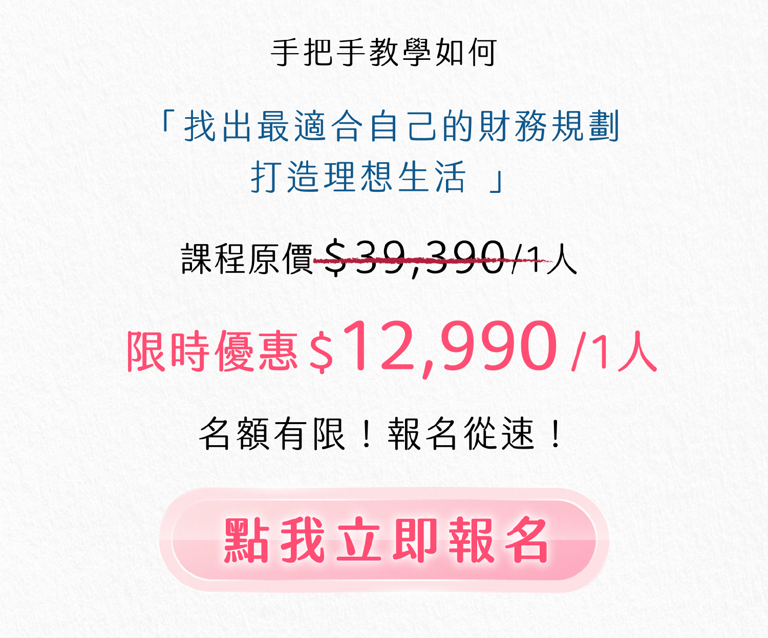 第一個階段「財務安全」,目標讓你的收支平衡,有債務的朋友學習如何理債,有些朋友雖然沒有貸款或負債,但卻用了錯誤的方式使用信用卡,導致自己產生隱性的負債,每個月都存不到錢,這些都會在第一階段做調整,知道自己的財務狀況及觀念,再從心態面幫你修正錯誤的金錢信念,學習如何盤點身上的資產與負債,有效掌握自己的財務狀況,沒有負債與壓力的狀態,人生才會比較輕鬆